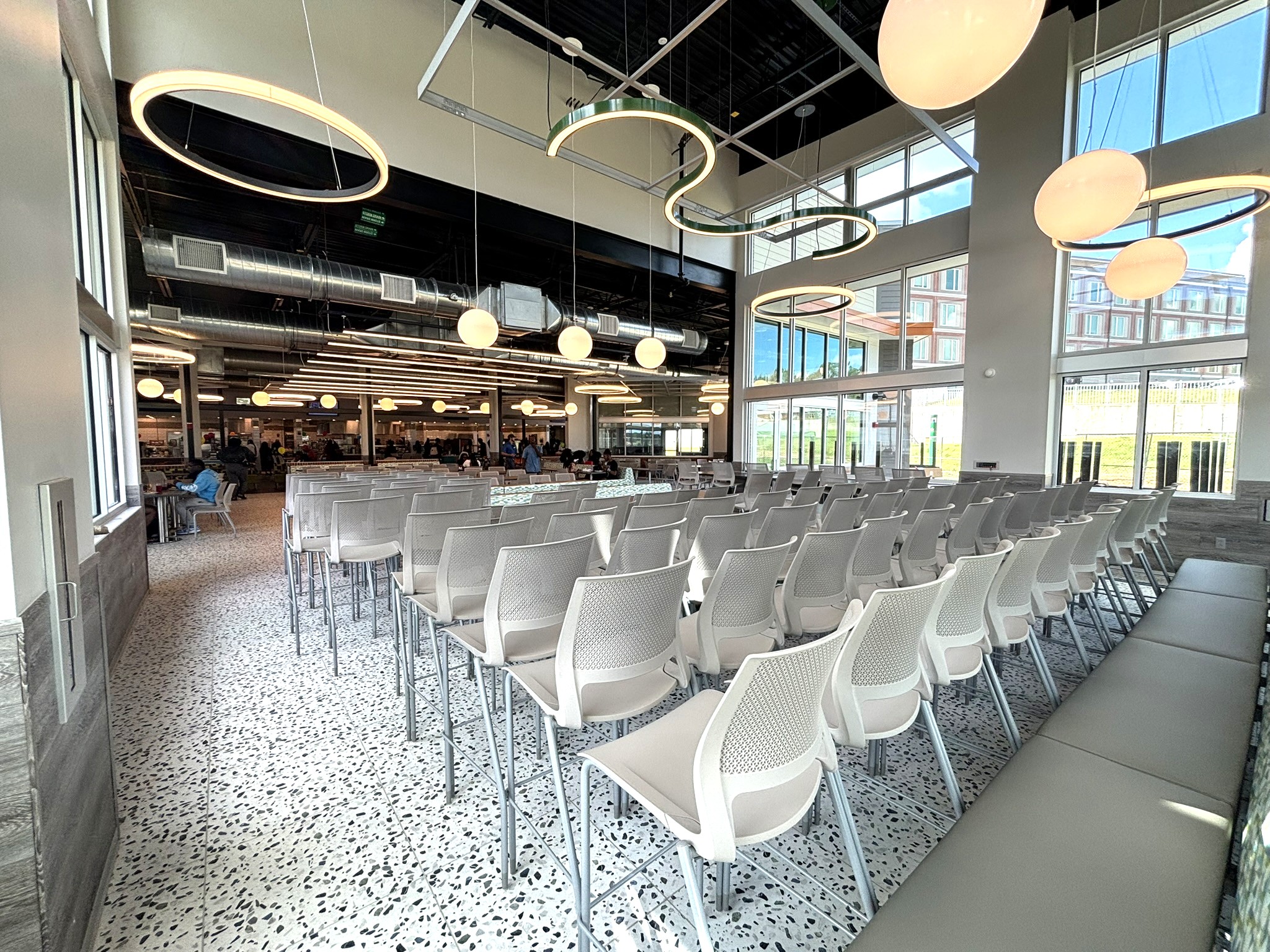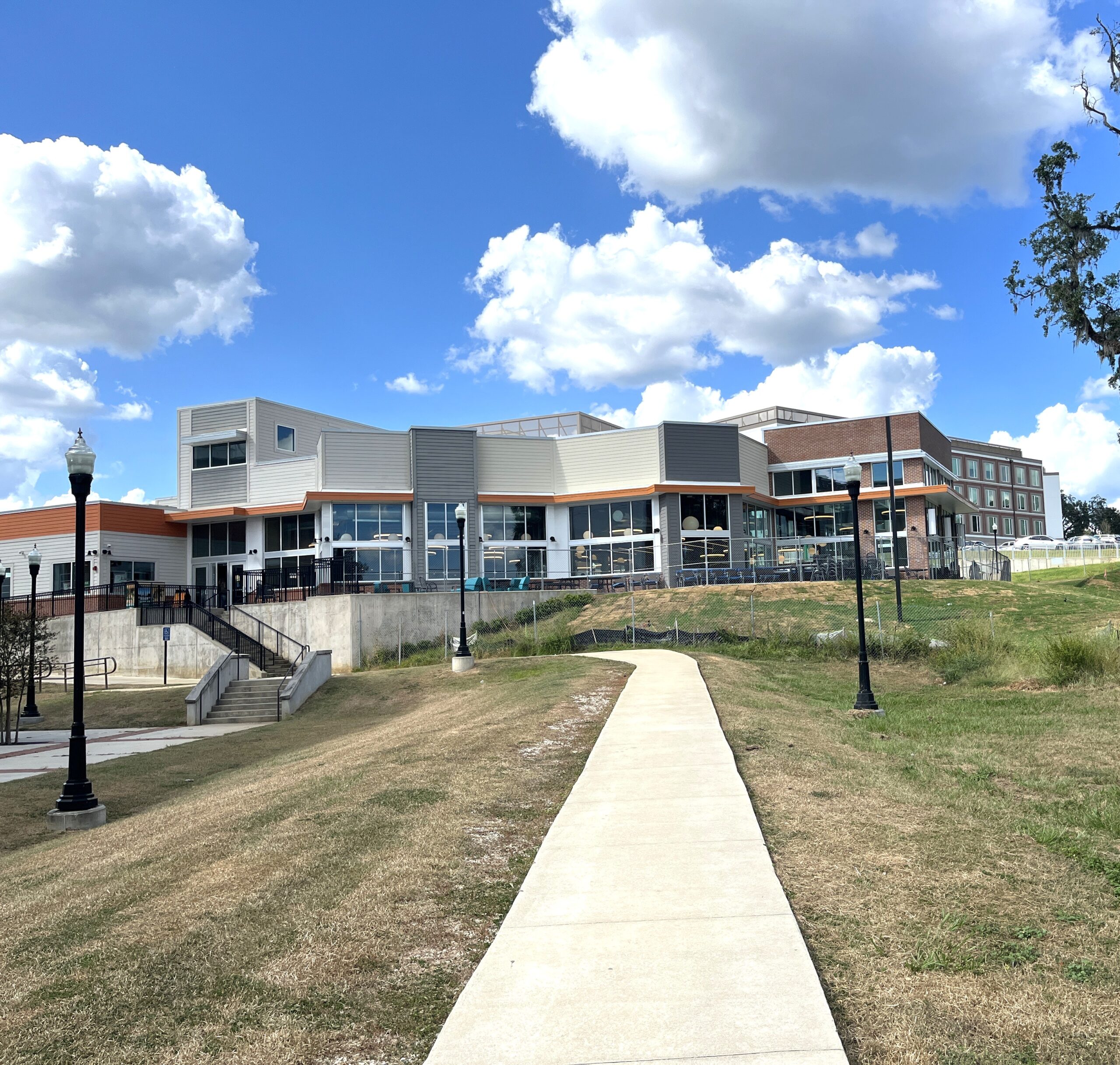 Florida A&M University expanded The Hub dining facility to meet growing campus demand and enhance student experience. The project added 3,765 square feet of indoor space with seating for 270, plus a 1,380-square-foot outdoor terrace with 36 open-air seats. Designed and built on an accelerated schedule to support the adjacent residence hall opening, the expansion was completed while maintaining uninterrupted food service. Guided by the 2023 Hub Expansion Study, the project includes fully integrated building systems designed by H2Engineering, featuring energy-efficient HVAC tied into campus infrastructure.