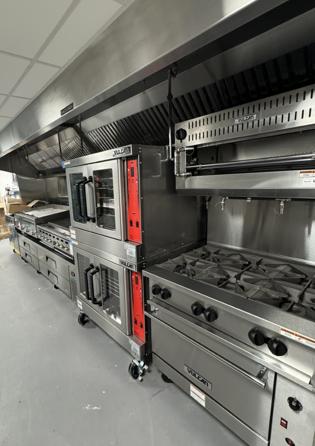 All-new lighting was installed throughout the space, enhancing both functionality and ambiance. The former warming kitchen and adjacent areas were reimagined as a fully operational commercial kitchen, capable of supporting expanded food service operations.