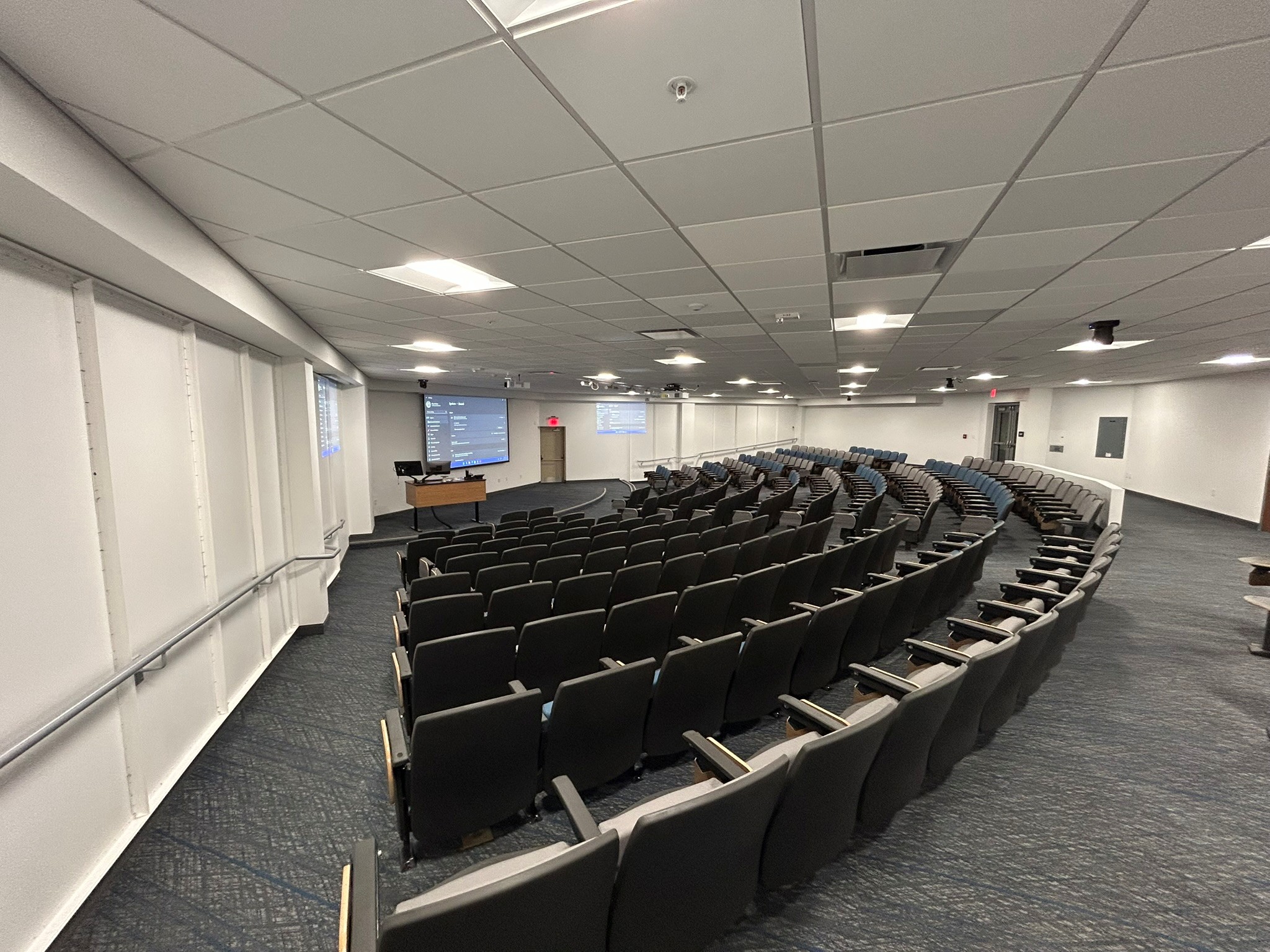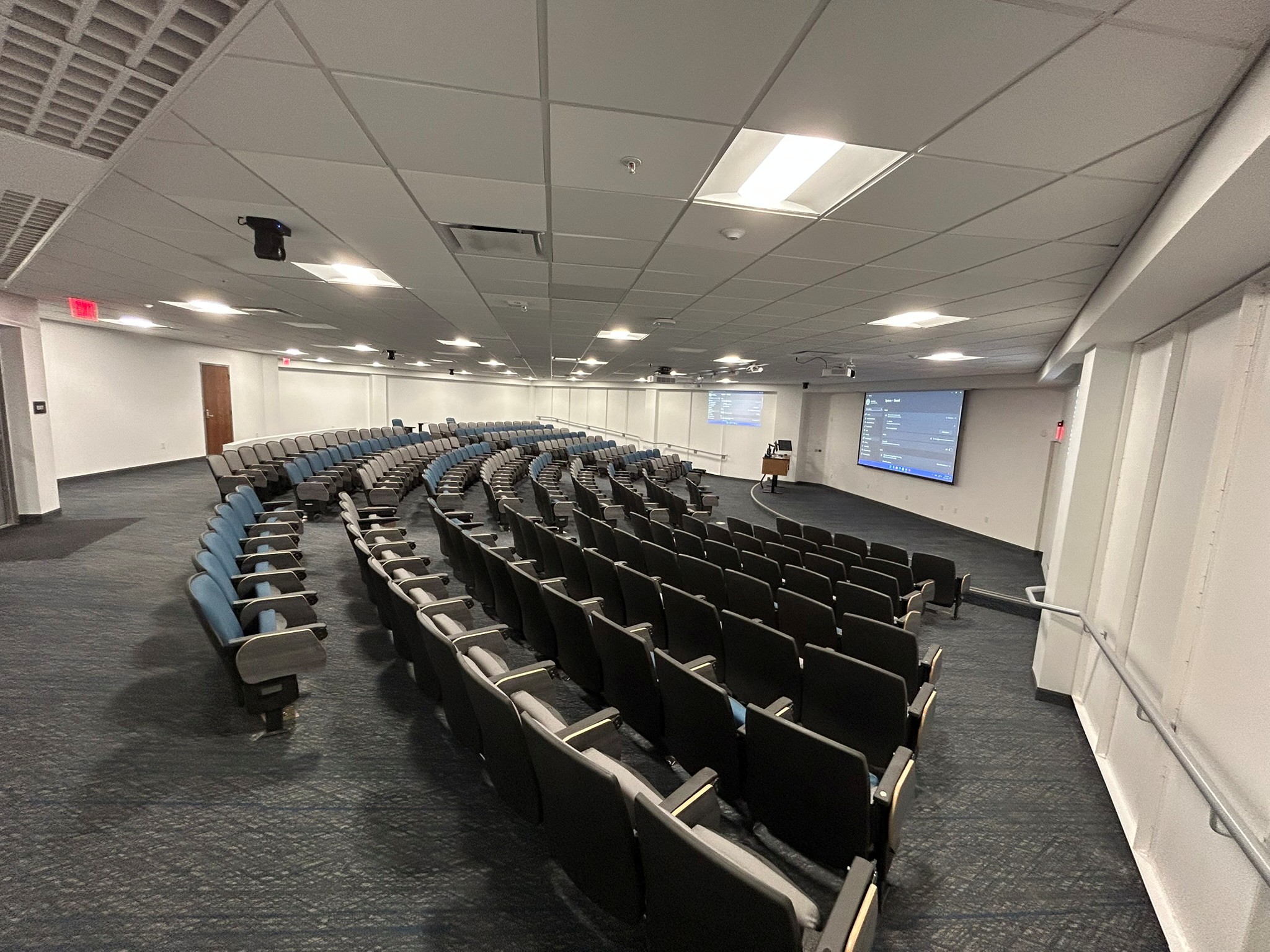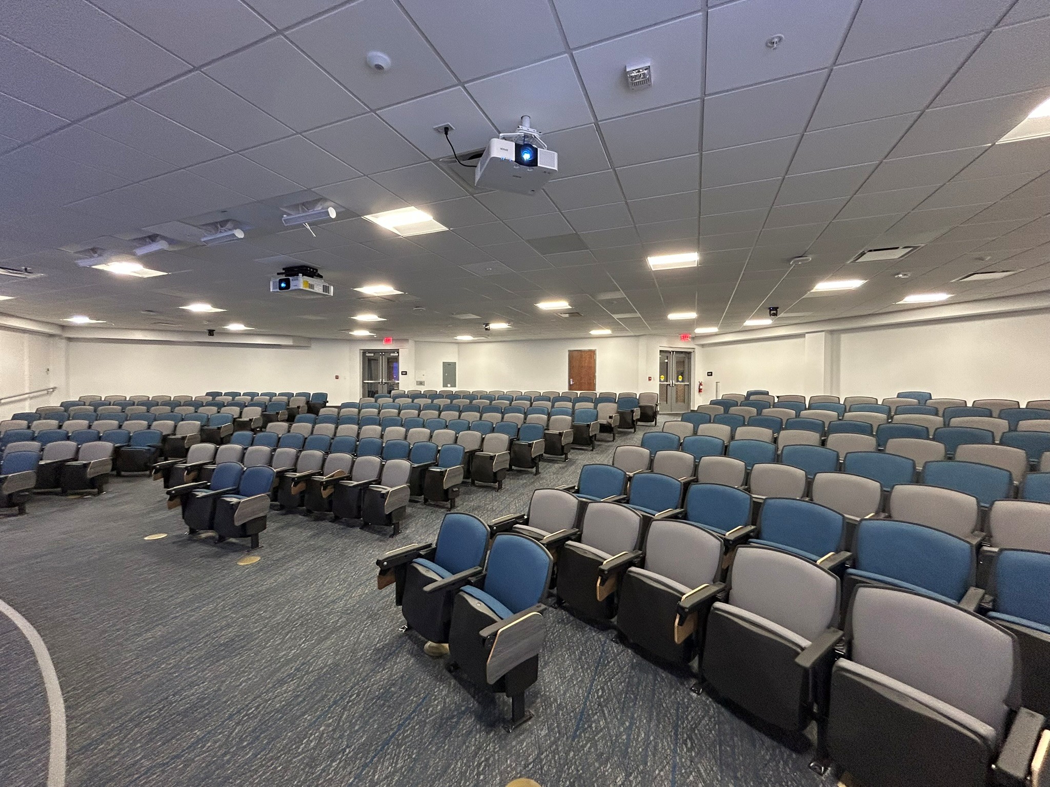 This project involved the renovation of a 250-seat lecture hall at the University of Florida. Upgrades included new lighting, ceiling-mounted devices, communications cabling, and a modern classroom audiovisual system. The work transformed an aging space into a high-tech environment that supports the evolving instructional needs of the College of Journalism. A key challenge was routing power beneath the existing sloped floor for the new powered seating, and H2Engineering developed a cost-effective solution that minimized demolition to both the floor and ceiling systems.